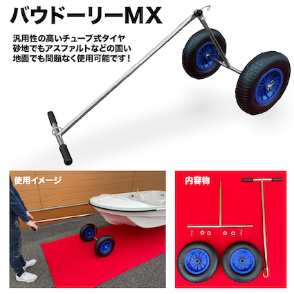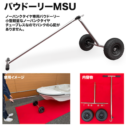※トランサムドーリー・バウドーリーの使用は、重量が120kgを超える場合いは、船外機を外してご使用ください。