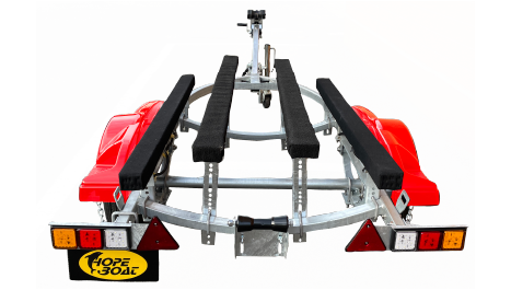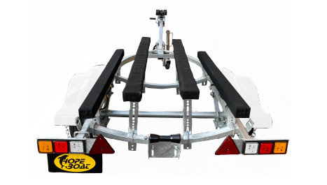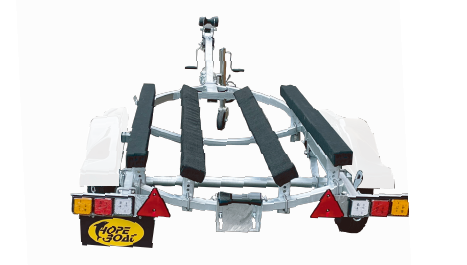 GTトレーラーはHOPE BOATオリジナルトレーラー!そのため、多種多様な船型にもフィットするよう、他社では通常2本を標準装備としているところを、GTトレーラーでは4本バンクを標準装備に!カタマラン船型にのpukapukaシリーズにもフィットするように、専用ロングステーも開発しました。ロングステーを使用することで、船型にフィットしたバンクセッティングを可能にし、かつ横揺れにも強い構造となるため、サイドサポートが不要に!GTトレーラーだからこそできる特別仕様です。」ボートに応じてTYPE-TとTYPE-Uに別れます。