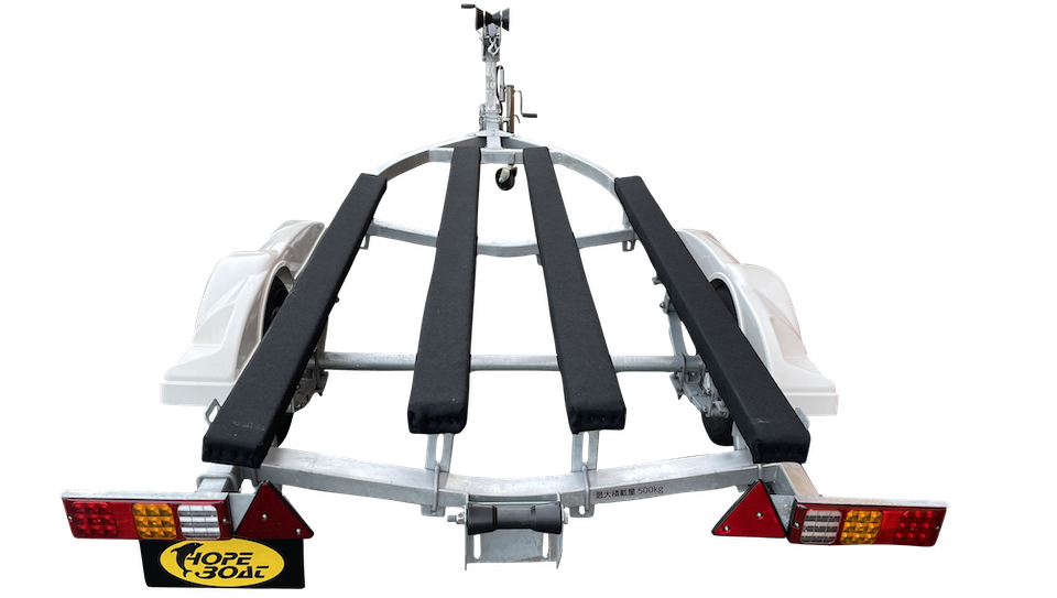 他社ではオプション装備となる高耐水LED製ランプ、増設バンク、キールローラーを付属品として搭載!GTトレーラーオリジナルパーツとして選べるカラーのGTフェンダー(黒・赤の場合オプション料金がかかります。)や角型マルチフックなど多彩なパーツの数々。それでありながら、今までよりも、お求めやすい価格設定と魅力満載のホープボートオリジナルトレーラーです!