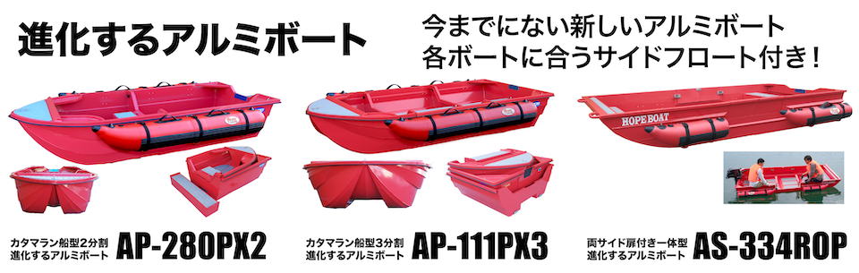 海の、川の、湖の、釣に、遊びに、災害に、レジャーからレスキューまで、小型ボートのホープ。あなたのボートライフをサポートします。