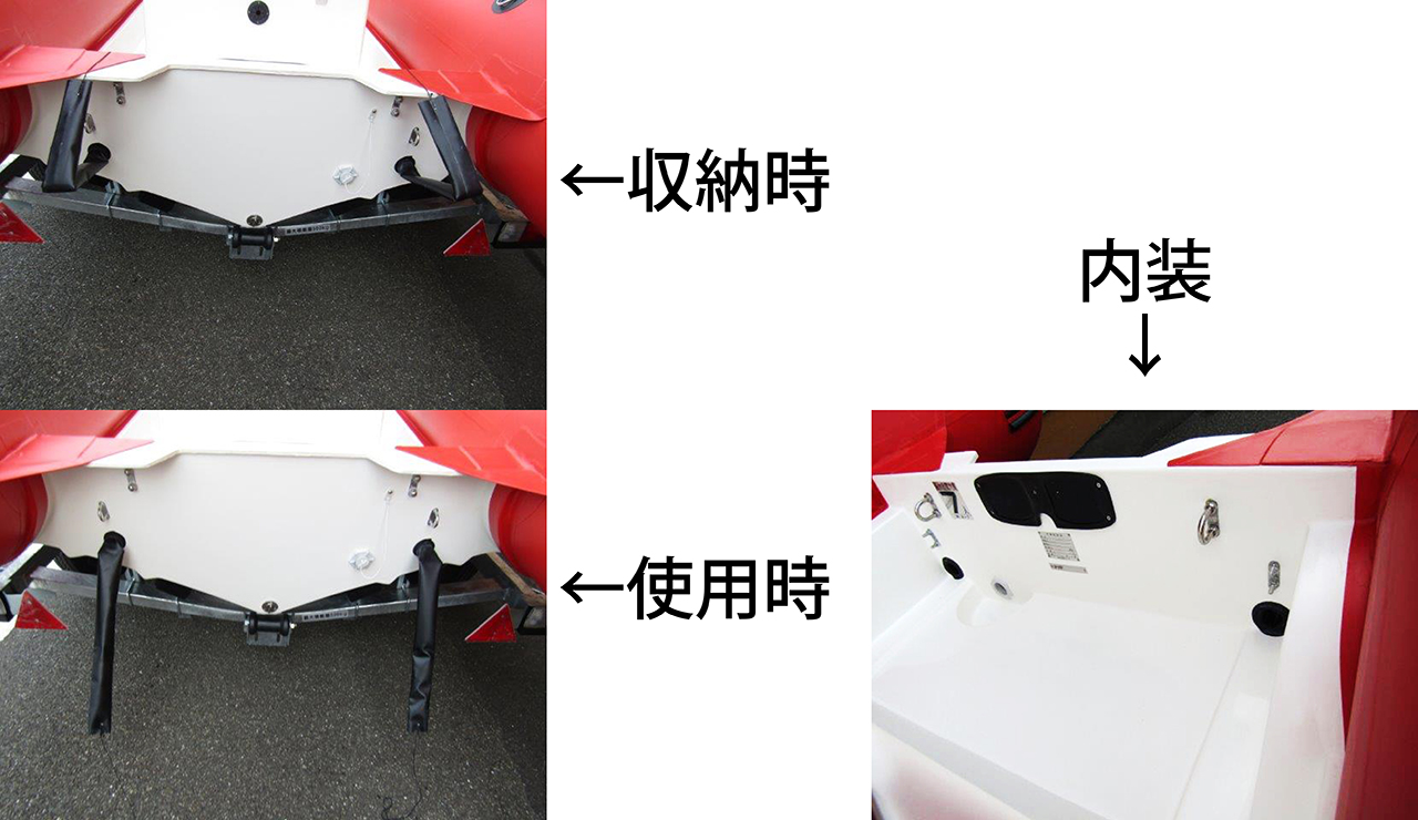 | 全長(m) | 全幅(m) | チューブ径(m) | 船内長(m) | 船内幅(m) | 気室 | 定員(人) | 最大馬力 | トランサム | フロア |
